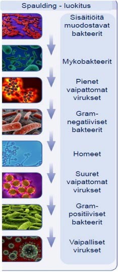Desinfektioaineiden, bakterisidien ja virusidien tehoa eri mikro-organismeihin on tarkasteltu yhä useammassa tutkimuksessa. Jotkut aineet tehoavat hyvin bakteereihin ja sieniin, mutta niillä ei ole merkittävää vaikusta viruksiin. Tutkijat ovat selvittäneet eri mikrobien herkkyyttä ja kehittäneet niitä varten luokitusmenetelmän. Laajalti hyväksytty ”Spaulding- Luokitus” antaa viitteitä eri mikrobityyppien herkkyyteen desinfektiolle. Oheisessa kuvassa ylhäällä ovat vaikeimmin tuhottavat, alhaalla helpoimmin. Covid-19 –virus lukeutuu vaipallisiin viruksiin. Desinfektio vaatii menetelmältä paljon ja on hyvin työlästä tutkia ja ohjeistaa mikrobien hallintaa erikseen kunkin mikro-organismin kohdalla. Hypokloorihapolla (HOCl) on erinomaiset puhdistavat, nopeasti desinfioivat ja hajua poistavat ominaisuudet. Toucan Eco on asetettu ihanteelliselle liuosvahvuudelle, n. 100 ppm. Näin saavutetaan optimoitu tehokkuus, nopea vaikutus- ja varoaika sekä turvallisuus kohteille ja käyttäjille.